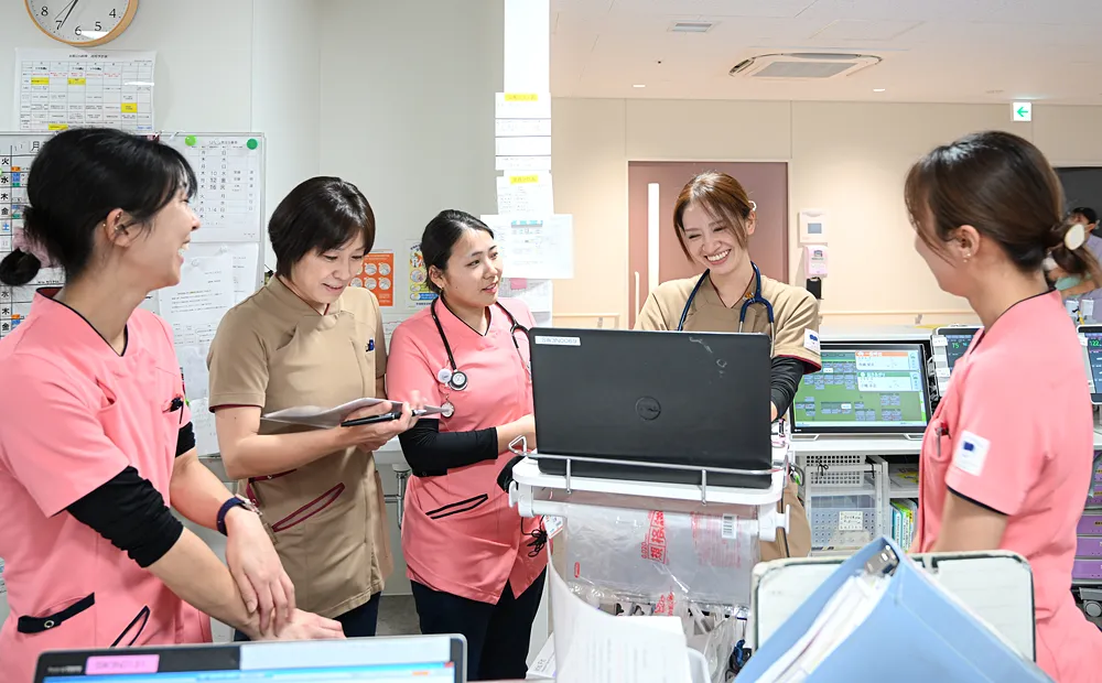 准看護学生のときに、当院の看護部長が倫理の授業をしに来てくれて、働いていたときのエピソードを話してくれたんです。さまざまな話を聞く中で、看護部長の看護観や、患者様に寄り添うことを大事にしている姿勢に感動と尊敬を覚え、こちらに入職しようと思いました。また、奨学金制度が用意されていたことも、選んだ理由のひとつです。